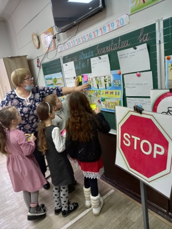 Instruire ,,O călătorie magică în țara semnelor de circulație” cu polițista CrisTina Pavlov și profesori-elevi din clasa a 8, alături de formatoarea Tintiuc Lilia. Am învățat împreună cum să traversăm în siguranță strada, am descoperit multe semne de circulație, am analizat regulile pentru bicicliști și urmează să mai participăm la o lecție practică, în care să demonstrăm cele însușite.
