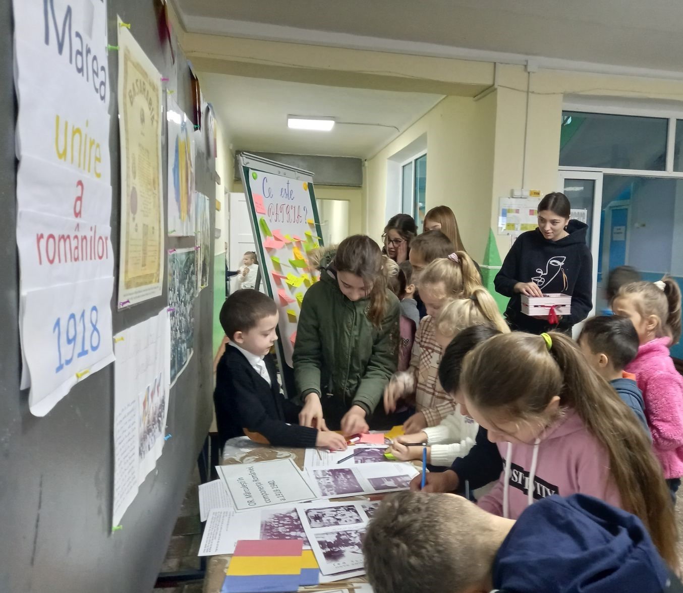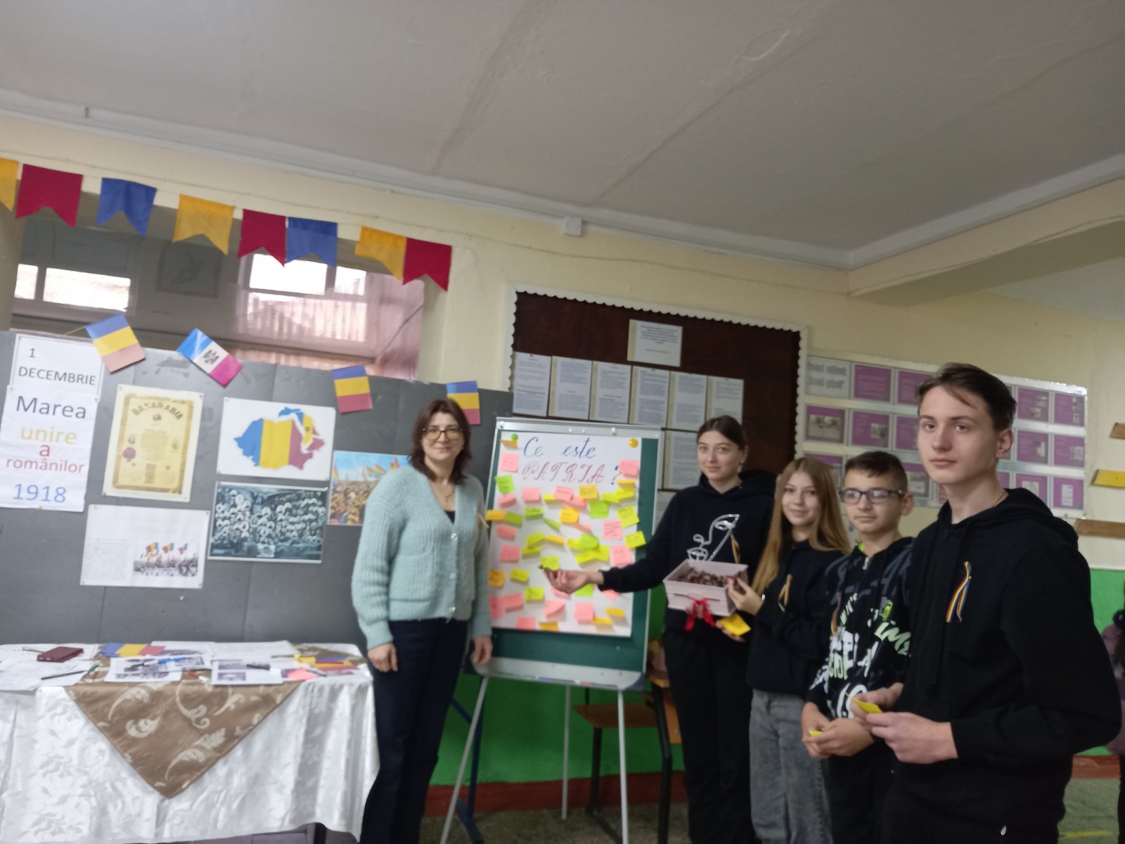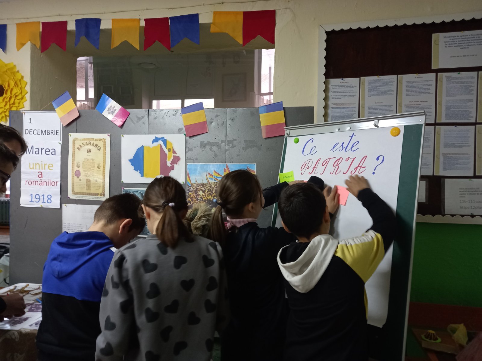 Elevii claselor I-VIII au avut posibilitatea să asculte detalieri despre acest eveniment, să audieze muzică patriotică, să-și expună părerea: Ce este Patria.