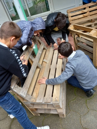 Gimnaziul ”V.Alecsandri”, or.Mărculești s-a alăturat proiectului propus de Direcția Generală Educație Florești cu genericul”Clasa în aer liber”. Astfel, împreună cu părinții, elevii, cadrele didactice a fost identificat spațiul din curtea școlii, s-au procurat paleți pentru confecționarea scaunelor și meselor. S-au implicat în meșterirea mobilierului buneii și angajații școlii: Cugut Anatolie, Manea Gheorghe, Rusu Gheorghe, Chelban Valeriu, Bescorovainîi Viorel. La următoarea etapă a urmat șlefuirea mobilierului din lemn. Băieții din clasele 5, 6, 7, 8, și a 9, în cadrul lecțiilor de educație tehnologică, folosind hârtie abrazivă au șlefuit suprafața, pregătind-o pentru vopsire. Suntem la început de cale, dar sperăm ca rezultatul să fie îmbucurător și clasa în aer liber să servească ca loc de instruire pentru copiii. Urmează lucrări de pavare a teritoriului și amenajarea estetică a clasei.
