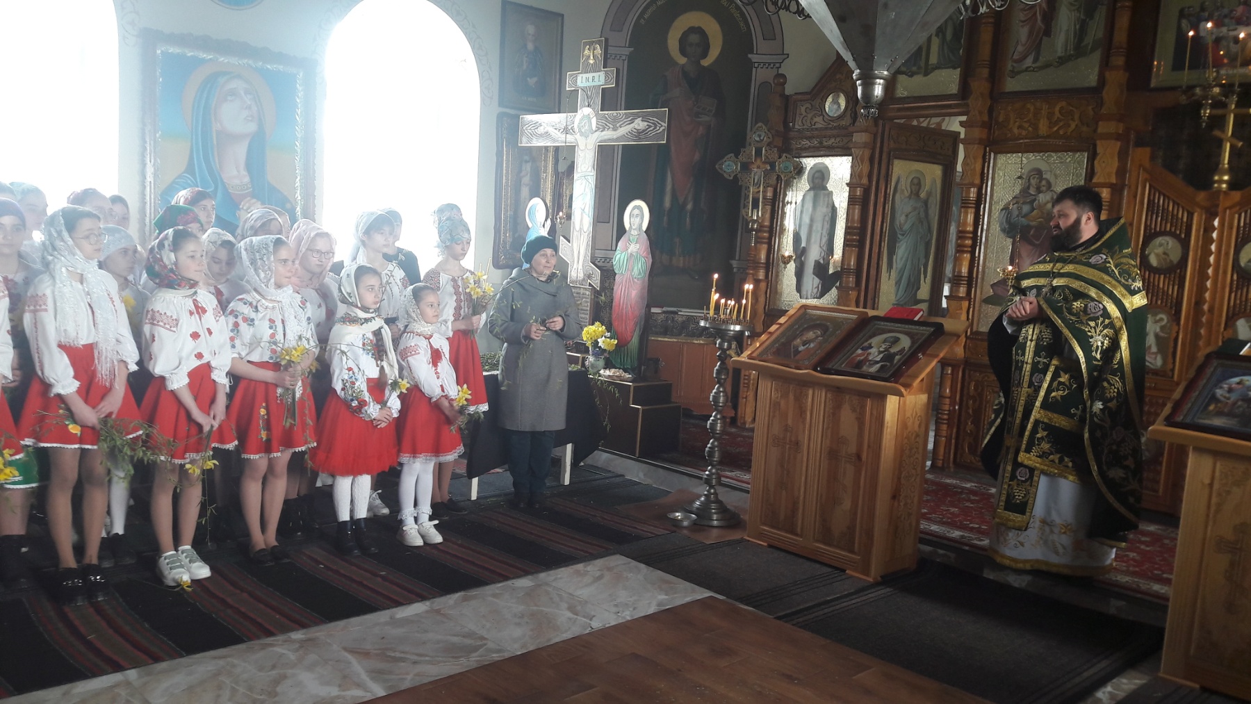 Colindele de Paşte se cântă numai în biserică. Spre deosebire de colindele de Crăciun, inspirate din folclor, linia melodică a celor pascale este inspirată din vechile cântece religioase bizantine. Există două feluri de colinde pascale: cele de durere, care se cântă în perioada de dinainte de Paşte, mai ales în Săptămâna Patimilor şi cele de bucurie. Aducem mulțumiri părintelui Carp pentru bunăvoință și ospitalitate, dar și posibilitatea de a desfășura activități educative în interiorul bisericii.