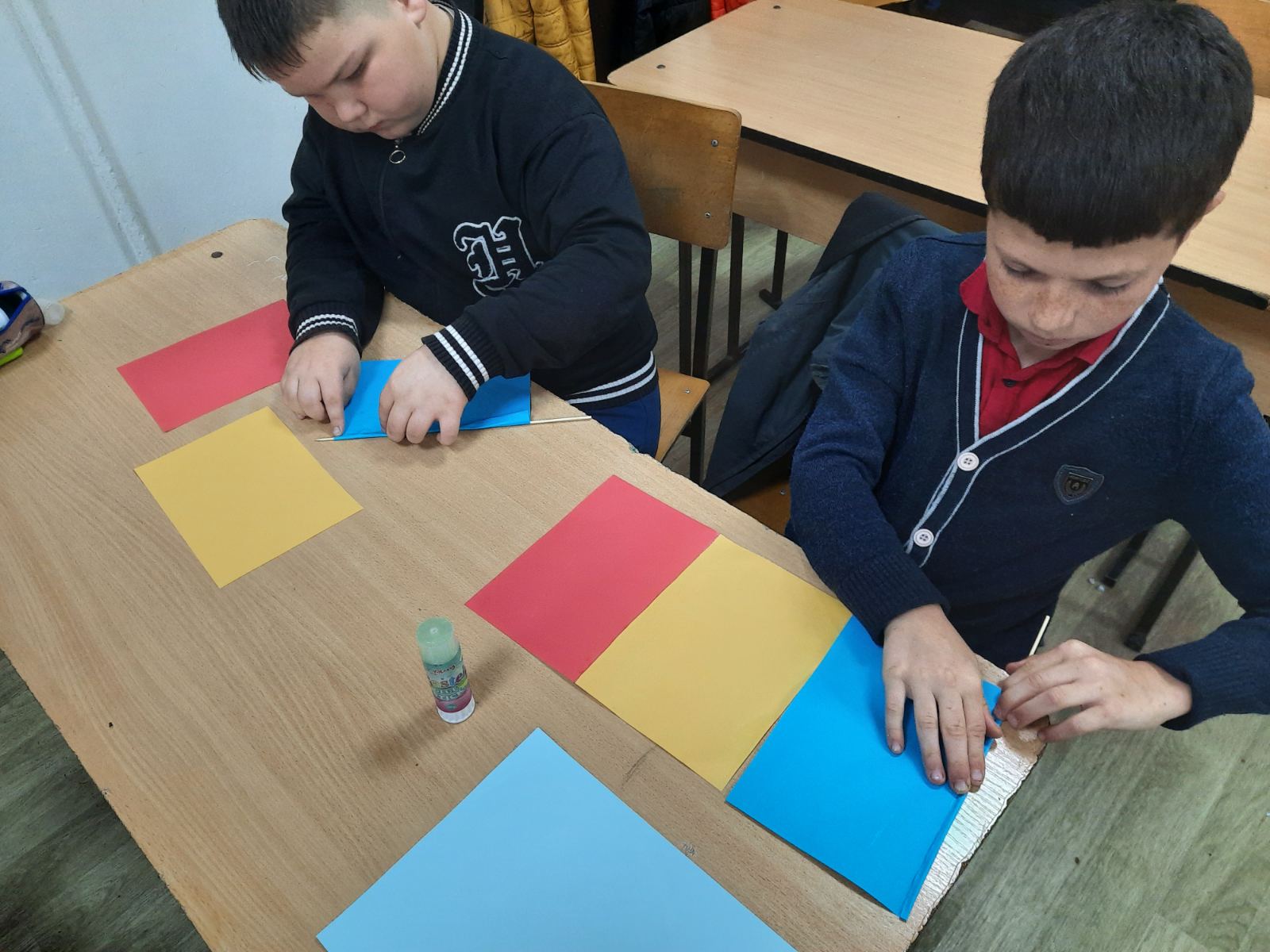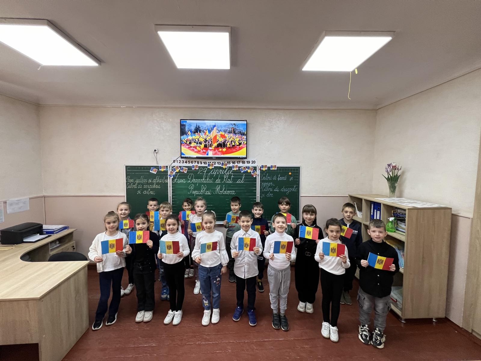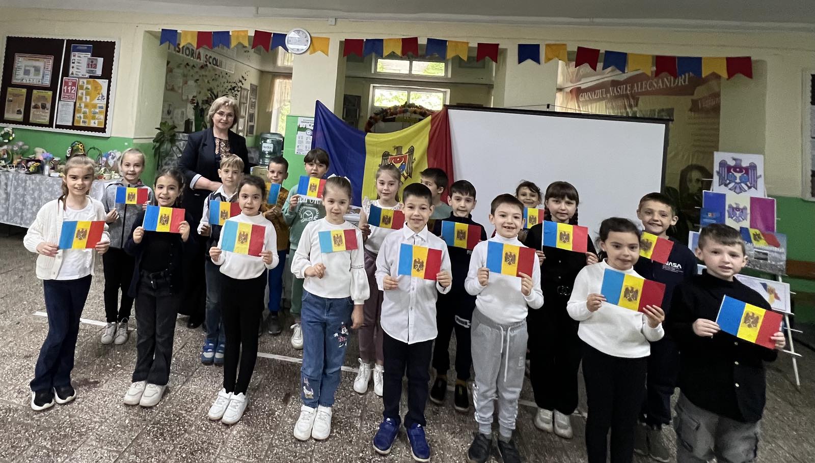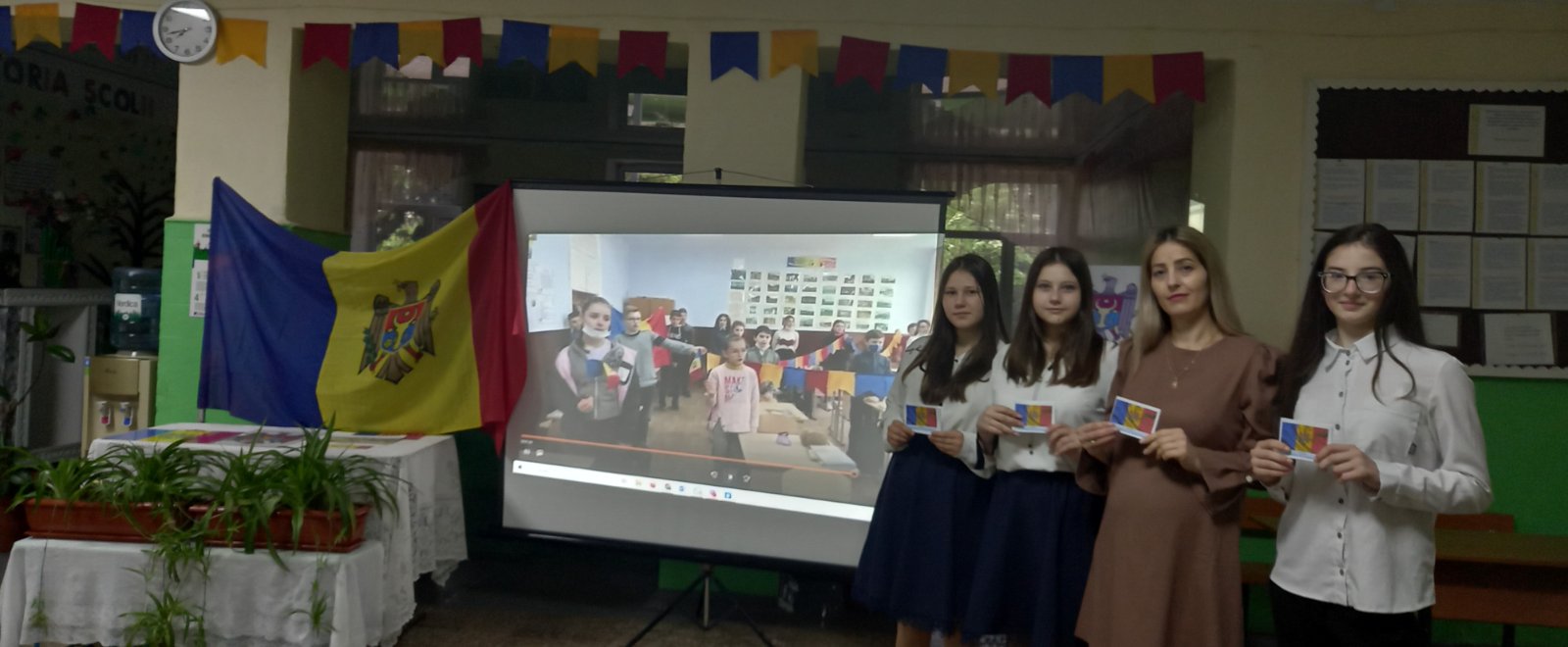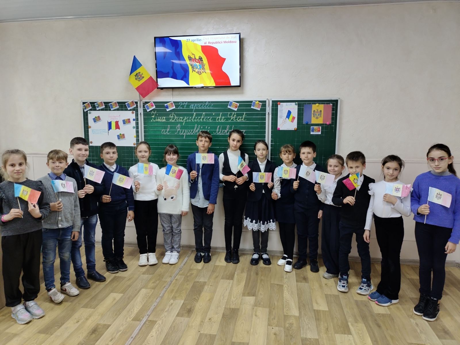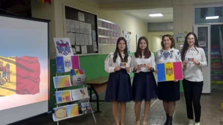 Elevii clasei a VIII, ghidați de prof.de istorie Nagrineac Svetlana și bibliotecara instituției Foleșteanu Larisa, au amenajat holul școlii întâmpinând profesorii, elevii și părinții cu un cuvânt de felicitare și un calendar-tricolor. Copiii claselor primare au pictat, au recitat poezii, au cântat cântece despre Tricolor. Cei din clasele gimnaziale au ținut discursuri despre trăsăturile și istoria Tricolorului.